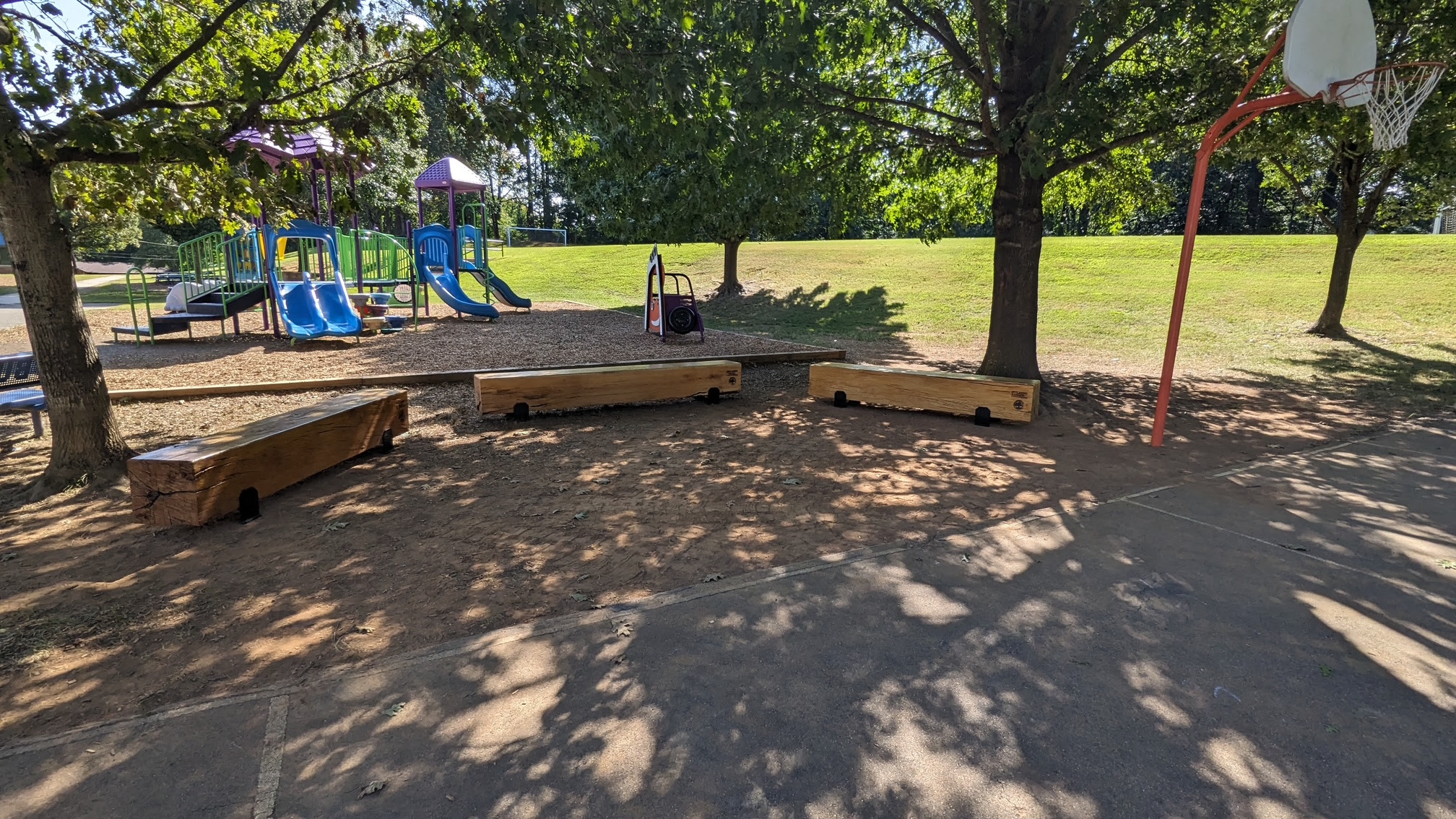 Blending a natural, timeless appeal with practical use, the benches provide space for teachers to gather classes outdoors and for neighbors to sit and connect while enjoying the grounds at Bannockburn ES.